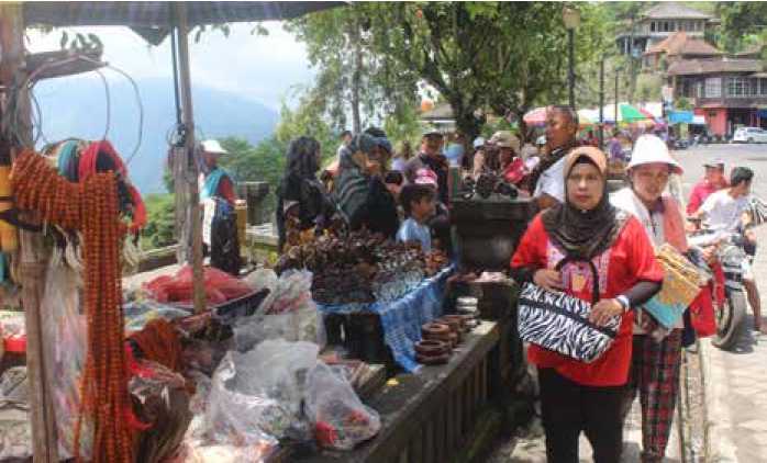 Foto 3. Wisatawan dan penjual souvenir di kawasan Batur Global Geopark.