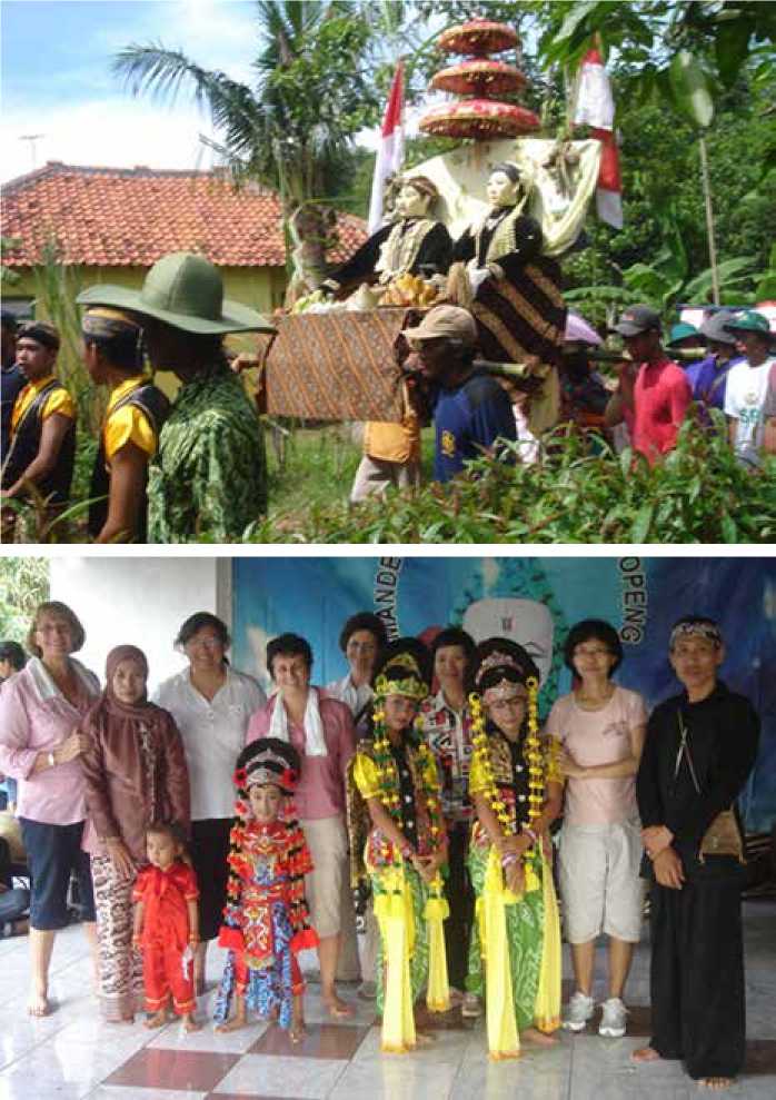 Foto 2 dan 3. Upacara Tradisi Mapag Sri dan wisatawan asing ke Sanggar Panji Asmara pada saat upacara tradisi Mapag Sri.