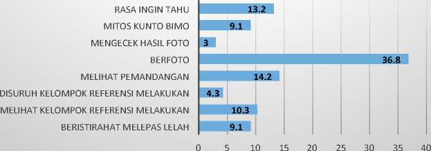 Selain berfoto, yang melatarbelakangi wisatawan melakukan pelanggaran terhadap Peraturan Pengunjung antara lain melihat pemandangan sekitar (14,2%), rasa ingin tahu akan