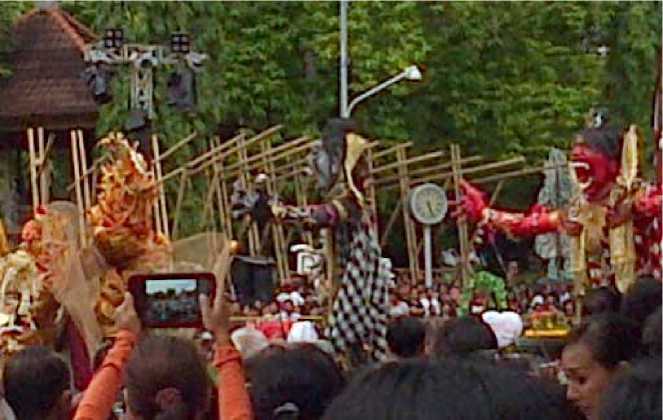 Foto 3 Antusiasme masyarakat menyaksikan parade ogoh-ogoh Sumber:Dinas Kebudayaan Kota Denpasar (2010)