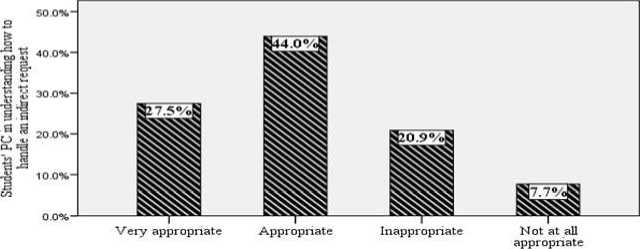 In conclusion of the speech acts in handling complaint, the students ability in understanding pragmatic is considered very low, they only can understand from the explicit words or phrases, but not in the implied meaning of some particular utterances. It is seen from the reported data that 9.8% students from the first questionnaire, 25% students from the second questionnaire and 3.3% from the third questionnaire got correct answer in determining the implied meaning of the given responses. In relation to this finding students still find it difficult to deal with the indirectness. The three situational designed are in indirect complaint. Leech, (1983:108) stated that people tend to use indirect speech acts mainly in connection with politeness and diminish the unpleasant message that contained in the speech. In this case, complaints can also be treated as a face threatening acts to the hearers and it is often realized through indirectness.