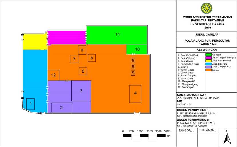 Pola ruang Puri Pemecutan pada tahun 1942 dan tahun 2016 dapat dilihat pada Gambar 1 dan Gambar 2.