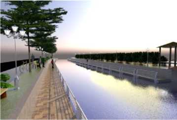 Gambar 2a. menunjukkan masih kurangnya fasilitas penunjang taman rekreasi, maka dari itu peneliti merekomendasikan penambahan fasilitas penunjang taman rekreasi bantaran Sungai Loloan berupa penambahan tempat sampah, bangku taman, lampu taman serta penambahan border antara pinggiaran sungai dan pinggiran pedestrian untuk keamanan pengunjung seperti yang ditunjukan pada Gambar 2b.