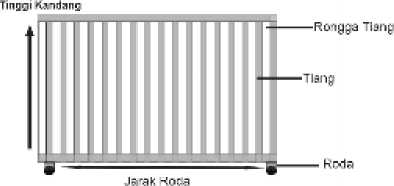 Kandang dorong dibuat serupa pagar sebagai pembatas ruang pada ruang umbar pomeranian, objek ini teradaptasi oleh pagar dorong yang memiliki roda dan lining relnya berfungsi untuk memudahkan pemindahan kandang. Ketinggian kandang dorong menyesuaikan kemudahan dalam mengambil atau menaruh pomeranian pada area umbar dan menyesuaikan jangkauan loncatan pomeranian agar tidak bisa menjangkau ketinggian kandang. Instalasi roda pada kandang umbar memiliki tujuan efisien terkait waktu dan tenaga, dengan adanya roda pada kandang umbar mempermudah pemindahan pomeranian dari area umbar ke area teduh (Gambar 4).