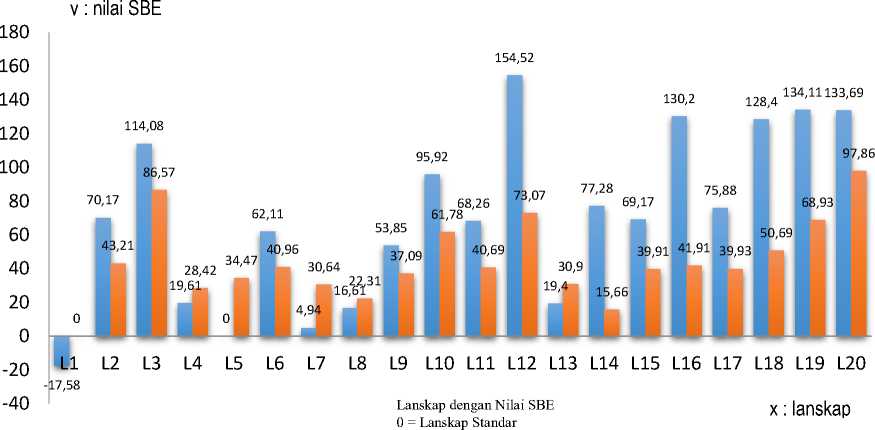 Seluruh nilai SBE yang telah diperoleh selanjutnya dikelompokkan berdasarkan kualitas estetika rendah, sedang, dan tinggi. Berdasarkan hasil penilaian SBE mahasiswa lanskap kualitas rendah memiliki nilai SBE < 57.37, lanskap kualitas sedang memiliki nilai SBE antara 57.37 sampai 114.73 dan lanskap kualitas tinggi memiliki nilai SBE > 114.73. Sedangkan hasil penilaian SBE pengunjung lanskap kualitas rendah memiliki nilai SBE < 32.63, lanskap kualitas sedang memiliki nilai SBE antara 32.63 sampai 65.25 dan lanskap kualitas tinggi memiliki nilai SBE > 65.25.