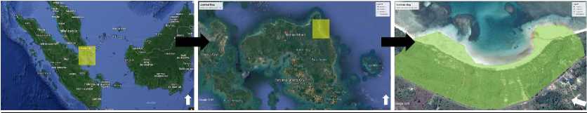 Gambar 1. Lokasi Studi Kepulauan Riau (kiri), Pulau Bintan (tengah), dan Lokasi Tapak (kanan).