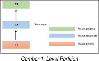2. Membuat Reachability Matrix (RM), dengan mengubah simbolik SSIM menjadi matriks biner. Proses ini adalah menerjemahkan V, A, X, O menjadi bilangan 1 dan 0. Dapat dilihat pada tabel 3. Tahap selanjutnya menganalisis tingkat partisipasi untuk mengklasifikasikan faktor-faktor dalam level yang berbeda dari struktur ISM. Terdapat tiga jenjang dalam level partitions yaitu jangka pendek, jangka menengah dan jangka panjang dan dapat dilihat pada gambar 1.