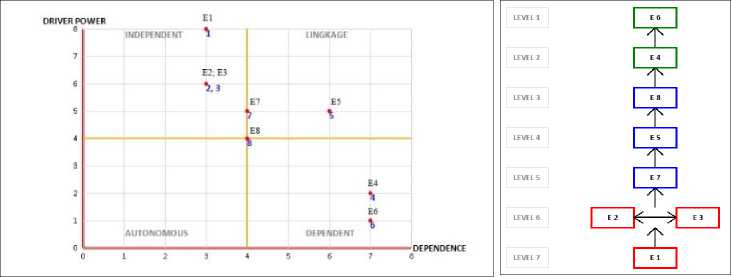Pada gambar 4a menunjukkan bahwa keseluruhan faktor berada pada sektor linkage yang artinya memiliki kekuatan dan ketergantungan yang kuat. Artinya secara keseluruhan faktor tersebut memiliki pengaruh yang besar terhadap faktor lainnya, dan memiliki tingkat ketergantungan yang kuat pada sistem sehingga penanganannya harus dilakukan dengan hati-hati.