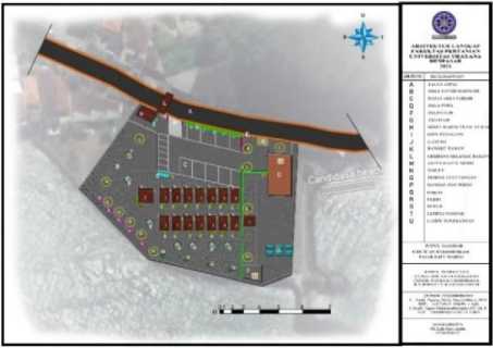 Fasilitas yang terdapat di area Pasar Batu Madeg sebelumnya yaitu gazebo kedai makanan, toilet, parkir dan sebagian besar ruang merupakan taman dengan pasir, sebagai area yang secara penataan awal difungsikan sebagai tempat persinggahan dan makan, Pasar Batu Madeg paling ramai dikunjungi ketika akhir pekan atau libur panjang. Aktifitas yang terdapat diarea tersebut seperti, berfoto, makan, memancing, mengobrol duduk dan beristirahat, bangku taman lainnya adalah pot tanaman dari beton yang juga dapat dijadikan sebagai tempat duduk untuk pengunjung, diameter bangku pot ini sekitar 60 cm untuk area tanaman dan total 130 cm diameter secara keseluruhan yaitu bangku beton dan taman. Lampu taman dipasang sekitar 1 meter dari bangunan seperti kedai makanan dan gazebo, untuk area parkir dan toilet dipasang lampu dengan jarak kira-kira 3 meter. Area parkir yang sebelumnya bercampur dengan salah satu kedai makanan disarankan untuk ditata dengan memfokuskan semua pedagang pada satu area berjualan, area parkir dibagi menjadi tempat parkir khusus sepeda motor pada sisi barat pintu masuk dan kendaraan roda empat disisi timur, toilet yang mengalami kerusakan disarankan untuk direnovasi ulang sesuai standar yang berlaku untuk toilet umum, dimana toilet dilengkapi dengan tanda khusus pria/wanita, washtafel, sabun cuci tangan, penerangan serta tempat sampah. Rekomendasi berupa site plan tersaji pada Gambar 7.