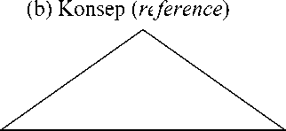 Hubungan kata dan konsep atau makna kata tersebut, serta benda atau hal yang dirujuk oleh makna itu berada di luar bahasa. Hubungan ketiganya disebut dengan hubungan referensial, yang biasanya digambarkan dalam bentuk segitiga makna yang diperkenalkan oleh Ogden dan Richard (1972), yang lebih dikenal dengan istilah kata (symbol), konsep/pikiran (reference), dan acuan (referent) seperti tampak pada segitiga di bawah ini.
