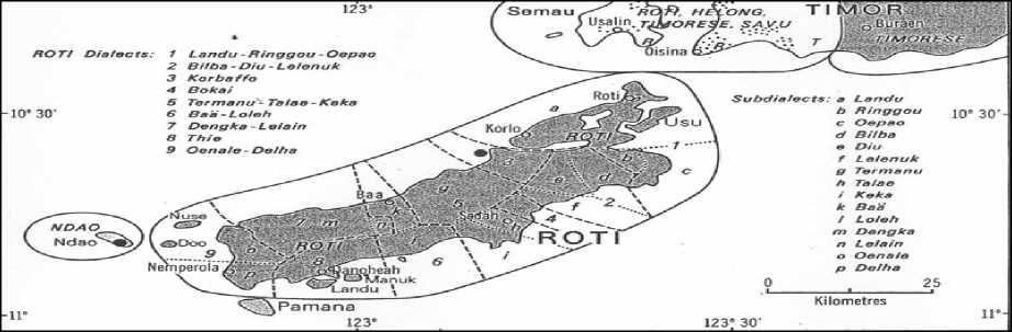 Bahasa Rote (selanjutnya BR) merupakan salah satu dari dua bahasa daerah rumpun Austronesia di Kabupaten Rote-Ndao, Provinsi Nusa Tenggara Timur. Jumlah penutur BR tergolong cukup besar, yakni kurang lebih 200.000 orang, yang bermukim di Pulau Rote, Semau, dan sebagian Pulau Timor (Kumanireng, dkk., 2000:1). Sementara itu, satu bahasa lain yang juga terdapat di Kabupaten Rote-Ndao adalah bahasa Ndao (BN) dengan jumlah penutur kurang lebih 3000 orang, yang bermukim di Pulau Ndao dan Nuse.