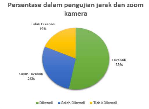 sesuai dengan citra yang diujikan. Gambar 15 menunjukan bahwa aspek persentase dalam pengujian jarak dan zoom kamera.