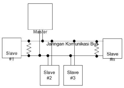 Sistem komunikasi melibatkan lebih dari satu perangkat pemroses data yang terhubung dengan sensor untuk melakukan pengamatan terhadap suatu objek sudah menjadi tren saat ini. Perkembangan sistem jaringan komunikasi seperti ini harus mampu memenuhi kebutuhan multi-poin [1] untuk menyediakan terminal bagi tiap perangkat terhubung ke dalam sistem jaringan yang dibentuk. Sistem minitroing [2] dan sistem telekontrol SCADA [2] menggunakan sistem komunikasi multi-poin serial RS485 [3] untuk menghubungkan tiap perangkat kedalam sistem jaringan menggunakan pendekatan model topologi jaringan BUS.