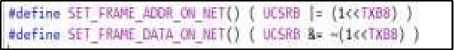 Baris pertama kode program menunjukan bahwa frame yang dikirimkan Piranti Master melalui BUS serial line berupa alamat dimana pada register UCSRB untuk bit 8 (bit terakhir mode 9 bit) diset dengan nilai 1. Baris kedua kode program merupakan frame berupa data dimana pada format ini, nilai register UCSRB untuk bit register TX8B diset dengan nilai 0.