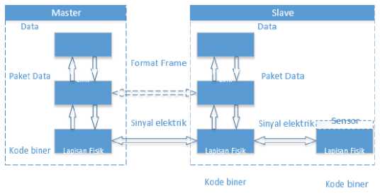 Slave berinteraksi dengan sensor melalui antarmuka sistem komunikasi yang disediakan untuk melakukan proses ukur dan mengolah data hasil ukur yang diterima oleh sensor.