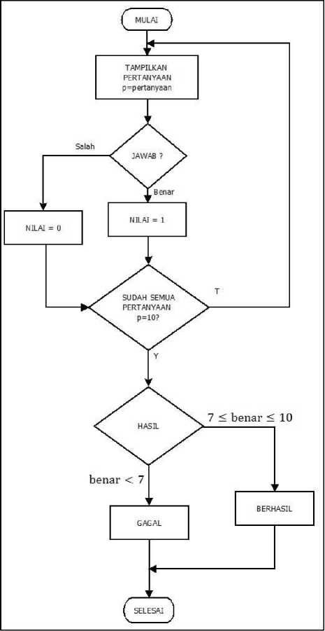User memulai permainan Tanya Jawab dengan menjawab satu persatu dari 10 pertanyaan yang ditampilkan secara acak. Dimana saat user berhasil menjawab satu pertanyaan dengan benar memiliki nilai = 1, jika salah menjawab pertanyaan nilai = 0. User mendapatkan hasil permainan Tanya Jawab setelah 10 pertanyaan dijawab oleh user. User dikatakan berhasil jika menjawab 7 sampai 10 pertanyaan dengan benar dan dikatakan gagal jika user hanya menjawab kurang dari 7 pertanyaan yang benar.