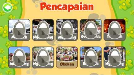 Gambar 6 merupakan scene Menu Pencapaian yang dapat dilihat melalui button pencapaian pada Menu Utama Game Explore Bali.