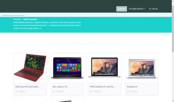Bisa dilihat hasil output dari searching “notebook untuk bermain game online” yang pertama adalah laptop ACER Aspire E5-552G (AMD A10-8700P). Notebook ACER tersebut dapat digunakan untuk bermain game online maupun offline. Jadi, hasil pencarian yang dilakukan akurat dan sesuai dengan input dari pengguna.