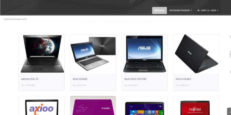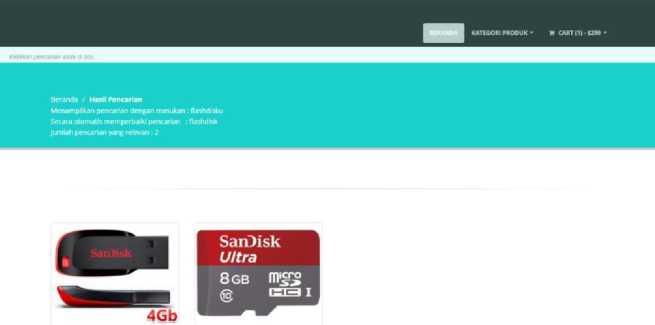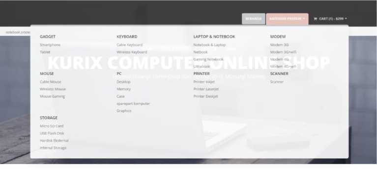 Jika kursor diarahkan pada tombol kategori produk maka akan muncul pilihan kategori produk yang ada di web ini seperti pada Gambar 4. Jika dklik pada salah satu pilihan kategori maka akan muncul barang yang termasuk pada kategori tersebut.