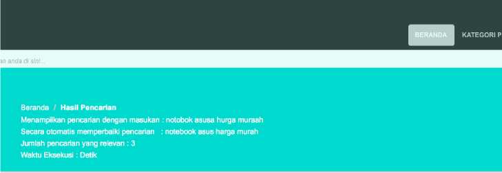 Metode Levenshtein disebut juga sebagai edit distance merupakan metode pengukuran (metrik) yang dihasilkan melalui perhitungan jumlah perbedaan yang terdapat pada dua string. Pada web e-commerce “Kurix Computer Online Shop” untuk kolom pencarian sudah menggunakan metode Levenshtein untuk automatic correction pada input. Operasi yang dapat dilakukan pada adalah penambahan, pengubahan dan pengurangan karakter. Pada aplikasi web search engine ini, penggunaan levenshtein sebagai perbaikan kata dilakukan perkata ataupun perkalimat. Gambar 5 dengan contoh kalimat “notobok asusa hurga muraah” setelah diperbaiki menjadi “laptop asus harga murah”.