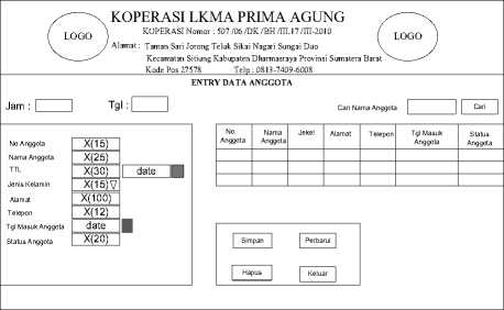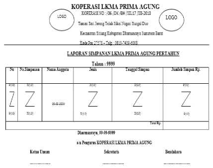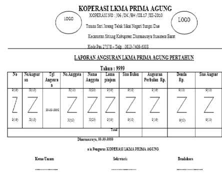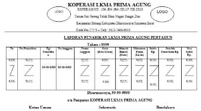 masyarakat juga dapat melakukan penyimpanan uang setiap seminggu sekali. Dalam hal ini diharapkan masyarakat dapat terbantu dengan adanya program atau aplikasi yang disediakan oleh LKMA Prima Agung. Dengan jumlah anggota 210.691 orang pada akhir tahun 2013 pengelolaan keuangan dan keanggotaan pada koperasi ini masih menggunakan sistem konvensional yaitu menggunakan buku besar dan aplikasi umum yang ada di kantor. Dengan jumlah anggota yang ada di LKMA Prima Agung cara ini kurang efektif karena transaksi simpan pinjam yang terjadi semakin tinggi sehingga perhitungan juga semakin banyak. Dalam pengolahan akuntansi juga membutuhkan ketelitian karena banyak pengulangan penulisan yang membutuhkan ketelitian dan pemborosan waku pengerjaan.