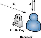 dikirimkan ke penerima oleh pengirim di sisi yang lain. Jadi yang akan menggunakan public key (yang hanya dapat didekripsi oleh oleh secret key), mengirimkan messages kepada penerima , dan penerima akan menggunakan secret key untuk membaca pesan dari pengirim.