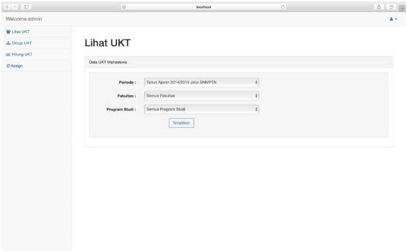 Sistem akan dibangun berbasis online menggunakan teknologi web menghasilkan tampilan seperti pada Gambar 2 yang merupakan tampilan awal dari web UKT yang dibangun. Terdapat beberapa input text yaitu username dan password serta combo box periode penerimaan mahasiswa baru.