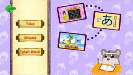 Gambar 5 merupakan tampilan pilihan menu utama belajar. Terdapat tiga buah pilihan belajar diantaranya tabel untuk melihat tabel huruf, menulis untuk berlatih menulis huruf dan tebak huruf untuk latihan menghafal huruf.