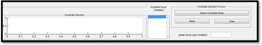 Uji coba untuk proses coordinate detection dilakukan setelah proses Morhology Image. Proses Coordinate Detection merupakan proses akhir dari Aplikasi Pendeteksi Titik Koordinat Frekuensi Lightning Whistler. Proses hanya meliputi satu bagian proses yaitu Detect Coordinate Points. Proses dilakukan pada bagian interface seperti Gambar 12.