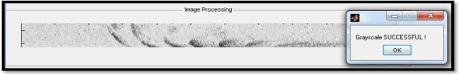 Hasil proses Grayscale menunjukkan bahwa nilai pixel dari citra spektogram telah berubah dari nilai RGB menjadi nilai keabuan. Proses dilanjutkan dengan melakukan thresholding pada citra grayscale sehingga mendapatkan hasil seperti Gambar 8.
