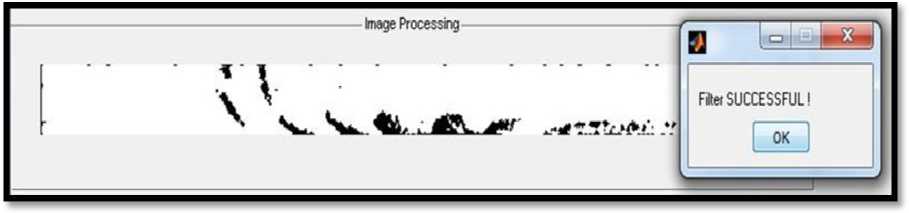 Hasil Thresholding menunjukkan bahwa sebagian besar noise yang ada pada citra telah berhasil dihilangkan. Citra pada Gambar 8 juga telah diubah menjadi citra biner. Proses thresholding dilanjutkan dengan median filter seperti Gambar 9.