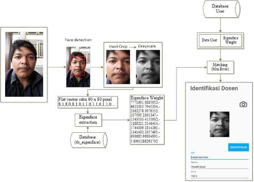 Gambaran sistem identifikasi citra wajah user yang tersimpan pada basis data ditunjukkan pada Gambar 3.