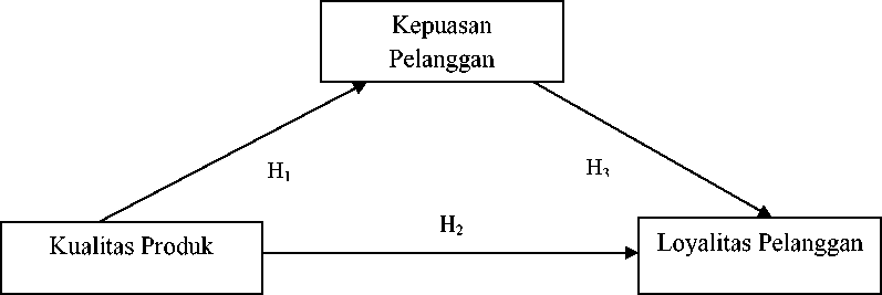H4: kualitas produk berpengaruh positif dan signifikan terhadap loyalitas pelanggan dengan kepuasan pelanggan sebagai variabel mediasi.