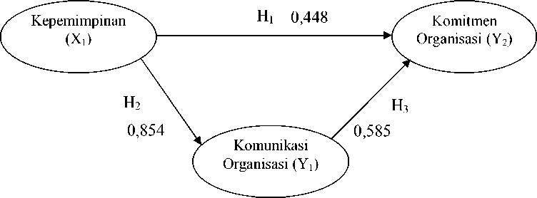 Gambar 2. Diagram Path Pengaruh Variabel Kepemimpinan Terhadap Komitmen Organisasi Melalui Komunikasi Organisasi