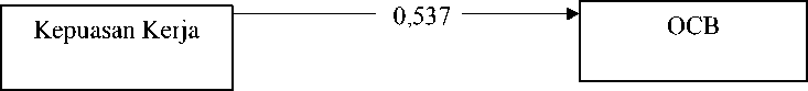 Besarnya pengaruh variabel kepuasan kerja terhadap komitmen organisasional dan Organizational Citizenship Behaviour (OCB) secara parsial dilihat dari nilai Standardized Coeficient Beta adalah sebagai berikut. Pengaruh variabel kepuasan kerja terhadap komitmen organisasional sebesar 0,494. Pengaruh variabel kepuasan kerja terhadap Organizational Citizenship Behaviour (OCB) sebesar 0,537. Pengaruh variabel komitmen organisasional terhadap Organizational Citizenship Behaviour (OCB) sebesar 0,314