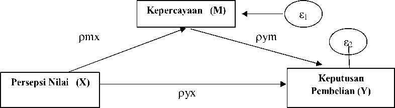 Sebelum melakukan pembelian oleh konsumen, yang pertama tercipta adalah kepercayaan konsumen terhadap produk atau merek, kemudian diikuti dengan persepsi nilai terhadap produk tersebut (Alpert dan Kamins, 1995). Bilondatu (2013) menyimpulkan bahwa persepsi mempunyai pengaruh yang signifikan secara terhadap keputusan pembelian. Kepercayaan mempunyai pengaruh yang positif terhadap keputusan pembelian, variabel kepercayaan mempunyai pengaruh dominan terhadap keputusan pembelian. Menurut hasil penelitian Chen (2012) hubungan antara keputusan pembelian dan persepsi nilai yang dirasakan adalah sebagian dimediasi oleh kepercayaan, hal Ini berarti kepercayaan dapat meningkatkan sejauh mana hubungan positif antara persepsi nilai yang dirasakan dan keputusan pembelian. Anteseden dari kerangka penelitian persepsi nilai yang dirasakan dan konsekuensinya adalah keputusan pembelian, sedangkan kepercayaan adalah mediator parsial.