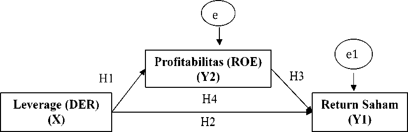(DER) ke profitabilitas (ROE) sebagai mediasi lalu ke return saham.
