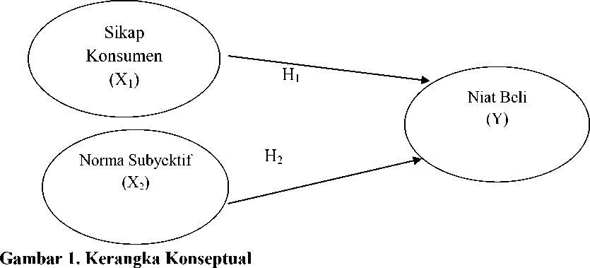 konsumsi wine di Southern California, menunjukkan bahwa norma subjektif berpengaruh secara signifikan terhadap niat beli konsumen. Triastity (2013) dalam penelitiannya pengaruh sikap dan norma subyektif terhadap niat beli mahasiswa sebagai konsumen potesial produk pasta gigi pepsodent menyatakan bahwa norma subjektif berpengaruh signifikan terhadap niat beli mahasiswa. Hasil penelitian Othman dan Rahman (2014) tentang niat beli makanan organik menunjukkan bahwa norma subjektif berpengaruh signifikan terhadap niat beli makan organik. Swidi (2012) meneliti tentang niat pembelian online pada mahasiswa di Malaysia menunjukan bahwa norma subjektif berpengaruh terhadap niat pembelian.