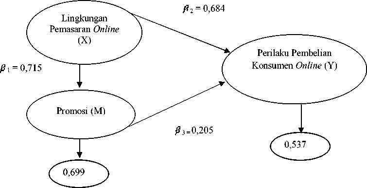 Pengaruh Langsung dan Pengaruh Tidak Langsung serta Pengaruh Total Lingkungan Pemasaran Online (X), Promosi (M), dan Perilaku Pembelian