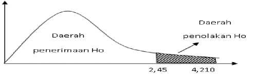 Kurva Distribusi F untuk Pengujian Pengaruh CAR, NPL, BOPO, dan LDR terhadap Kinerja keuangan bank secara simultan