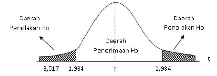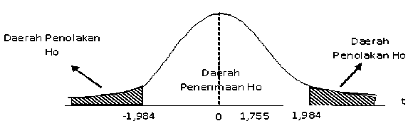 Kurva Distribusi t untuk Pengujian Pengaruh NPL Terhadap Kinerja Keuangan Bank