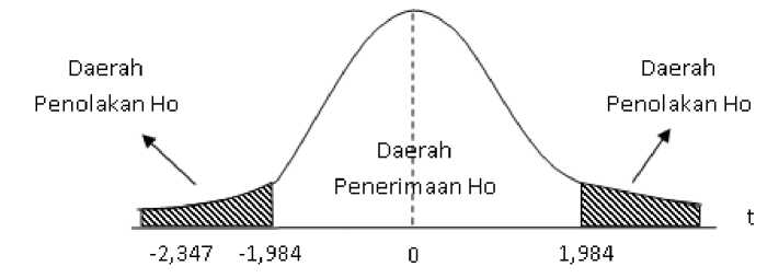 Kurva Distribusi t untuk Pengujian Pengaruh LDR Terhadap Kinerja Keuangan Bank