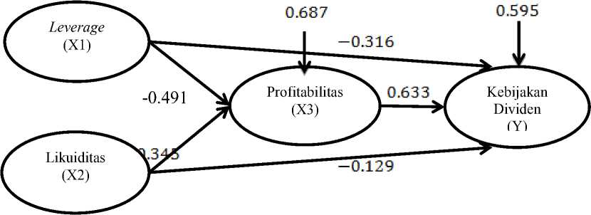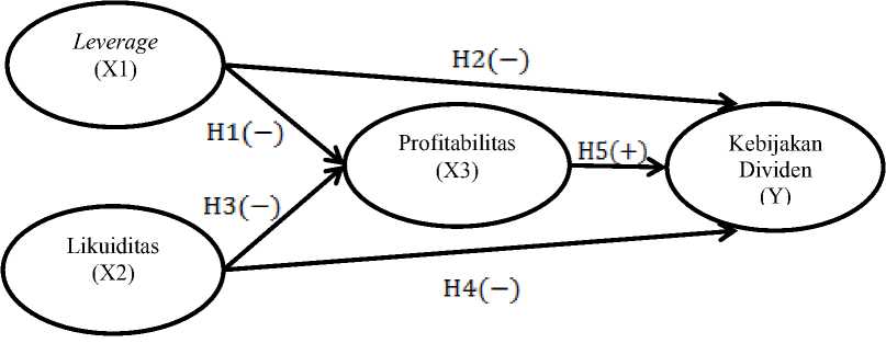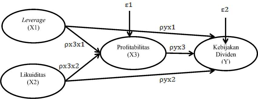 Variabel eksogen dalam penelitian ini yaitu Leverage (X1) dan Likuiditas (X2). Variabel endogen dalam penelitian ini yaitu Kebijakan Dividen (Y) dan yang menjadi variabel intervening dalam penelitian ini yaitu Profitabilitas (X3)