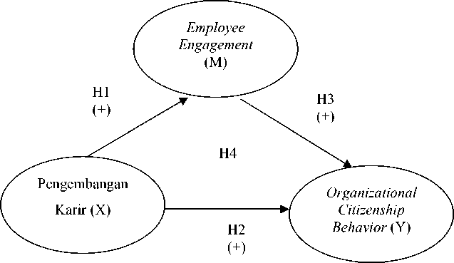 H4: Employee engagement memediasi pengaruh pengembangan karir terhadap organizational citizenship behavior.