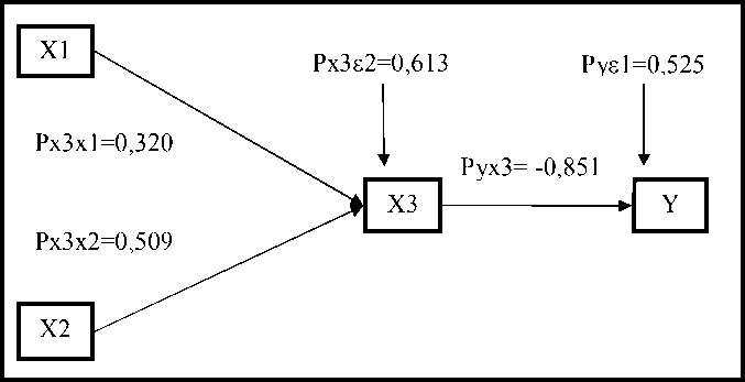 = -0,851 X3 + 0,525 ε1 dan R2yx3= 0,724