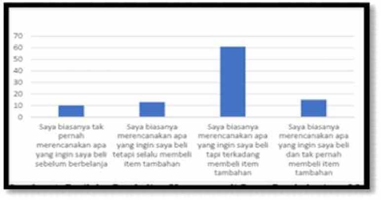 Gambar 1. menunjukkan bahwa sebagian besar konsumen di Indonesia memiliki perilaku implusif terutama dalam membeli item tambahan yang tidak direncanakan. Dengan jumlah pusat perbelanjaan modern yang semakin banyak, diperkirakan perilaku impulse buying yang dilakukan konsumen juga akan mengalami peningkatan (Adiputra, 2015). Konsumen yang sudah terpenuhi kebutuhannya, nantinya akan melakukan Impulse buying saat melakukan pembelian suatu produk (Putra dan Mudiantono, 2014). Impulse buying dapat