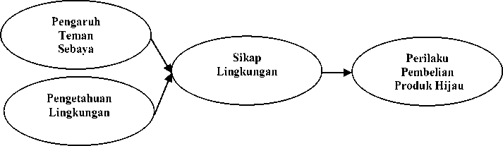 Berdasarkan uraian sebelumnya, bahwa variabel pengaruh teman sebaya dan pengetahuan lingkungan berpengaruh terhadap sikap lingkungan, dan sikap lingkungan selanjutnya berpengaruh terhadap perilaku pembelian produk hijau, maka dapat dibuat kerangka konsep seperti yang dapat dilihat pada Gambar 1.