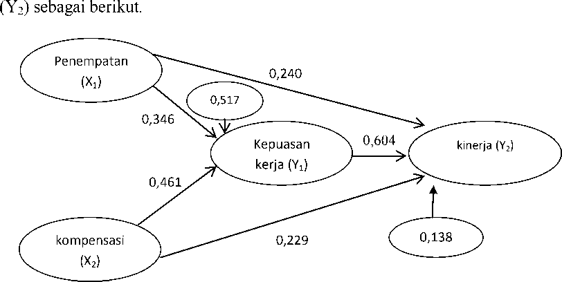 Berdasarkan hasil analisis regresi sub-struktur 1 dan sub-struktur 2, maka dapat digambarkan model analisis jalur secara langsung antarvariabel penempatan (X1) dan kompensasi (X2) terhadap kepuasan kerja (Y1), dan kinerja karyawan