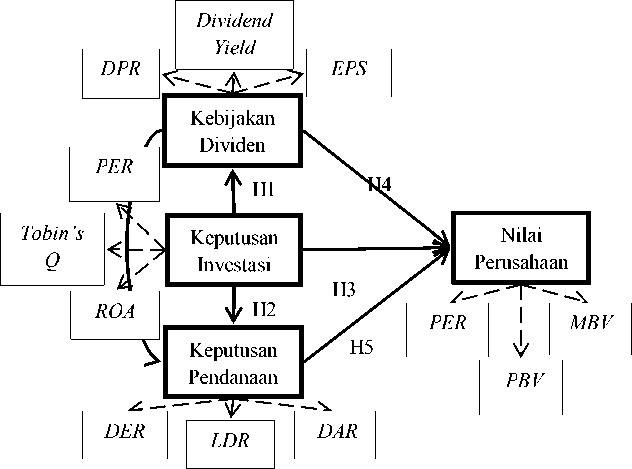 hasil penelitian tersebut, ditemukan adanya kesenjangan dari hasil penelitian sebelumnya (research gap) yang menjadi salah satu sumber masalah dalam penelitian ini. Penelitian ini memiliki beberapa tujuan yaitu (1) untuk mengetahui signifikansi pengaruh keputusan investasi teradap kebijakan dividen, (2) untuk mengetahui sigifikansi pengaruh keputusan investasi terhadap keputusan pendanaan, (3) untuk mengetahui signifikansi pengaruh keputusan investasi terhadap nilai perusahaan, (4) untuk mengetahui signifikansi pengaruh kebijakan dividen terhadap nilai perusahaan, (5) untuk mengetahui signifikansi pengaruh keputusan pendanaan terhadap nilai perusahaan, dan (6) untuk mengetahui signifikansi pengaruh kebijakan dividen terhadap keputusan pendanaan .