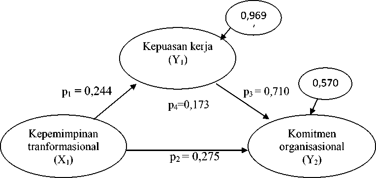 kepemimpinan transformasional, kepuasan kerja dan komitmen organisasional digunakan analisis jalur.